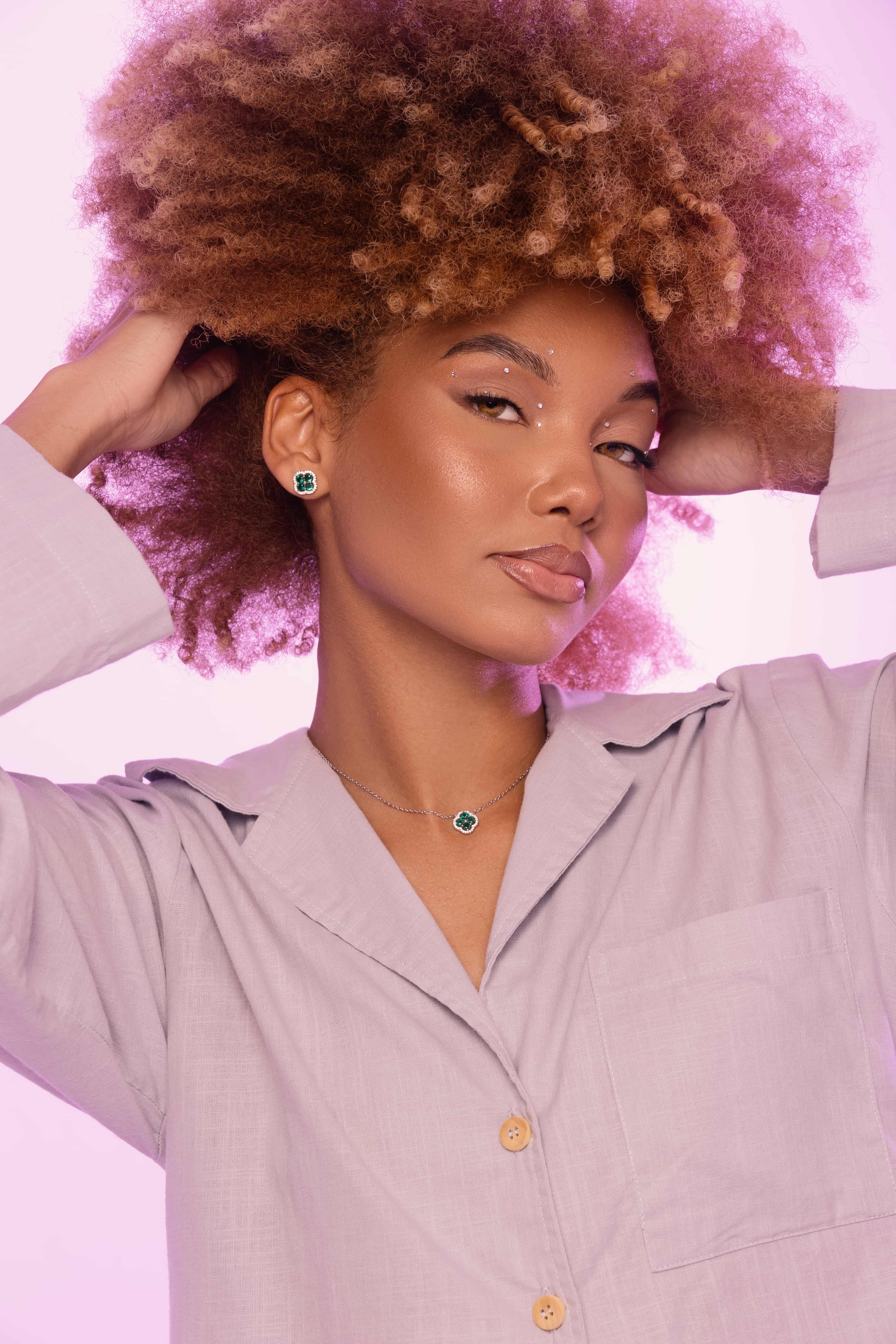 Anel inspirado no brilho das estrelas representadas em volta dos astros. Possui pedras de zircônia redondas que formam design de trevo, símbolo de sorte e boa fortuna