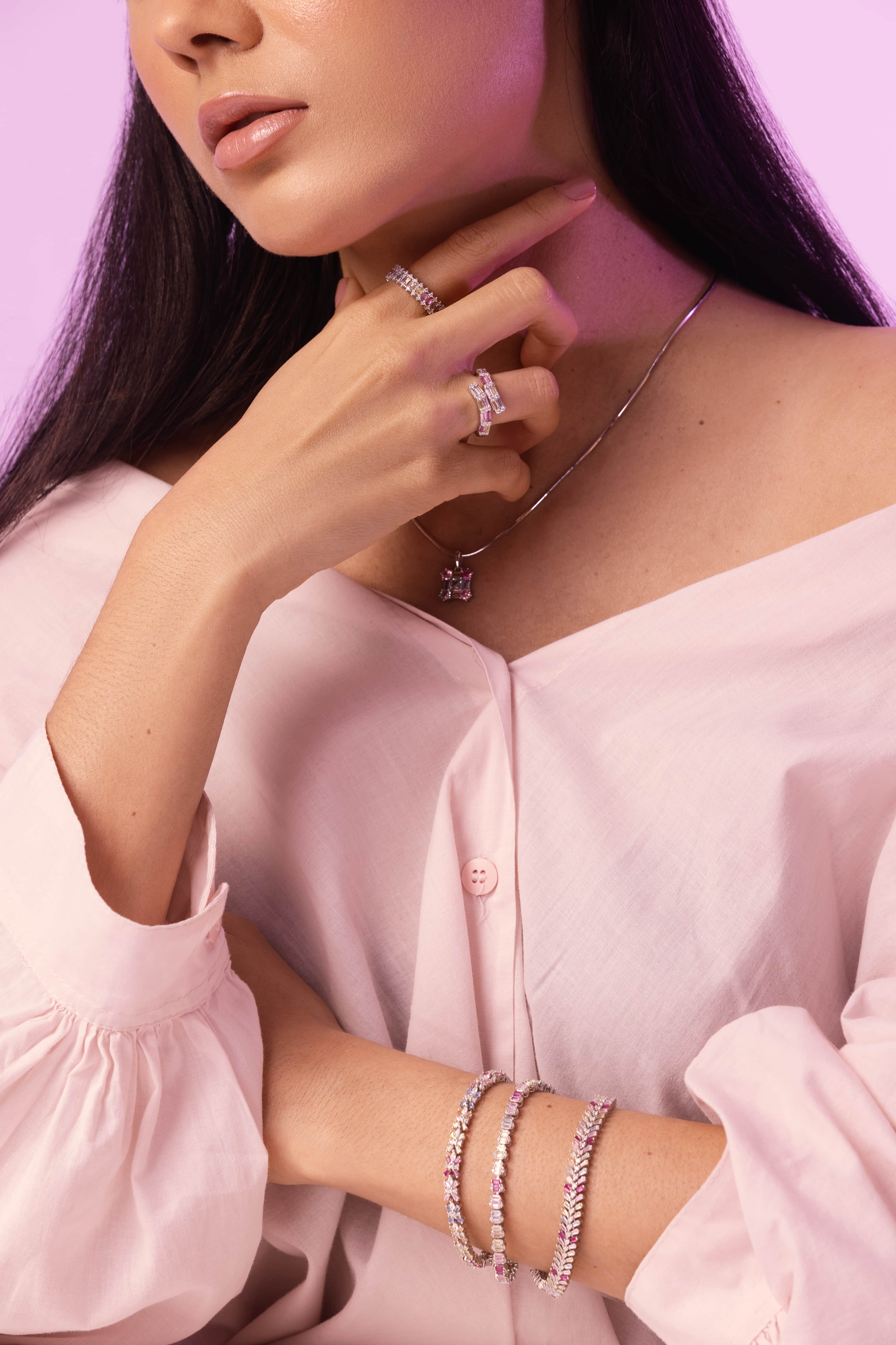 Anel inspirado na coloração dos cosmos, completo com pedras de zircônia coloridas